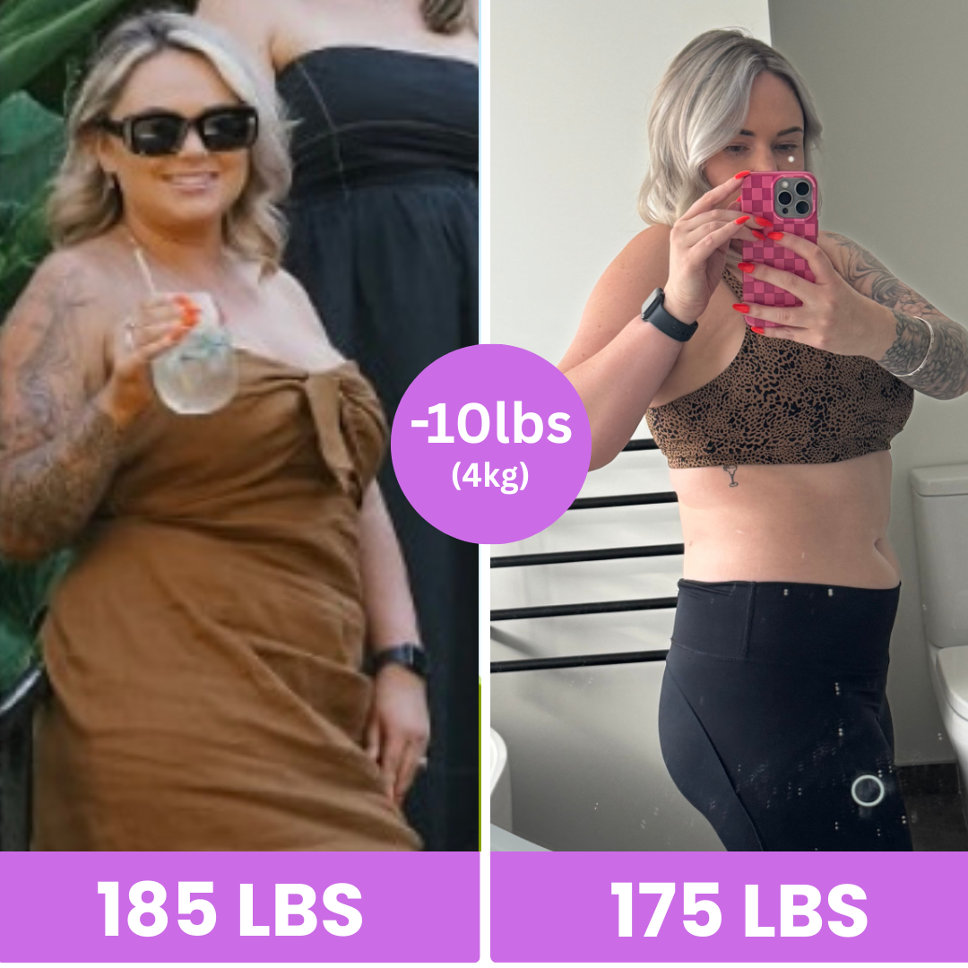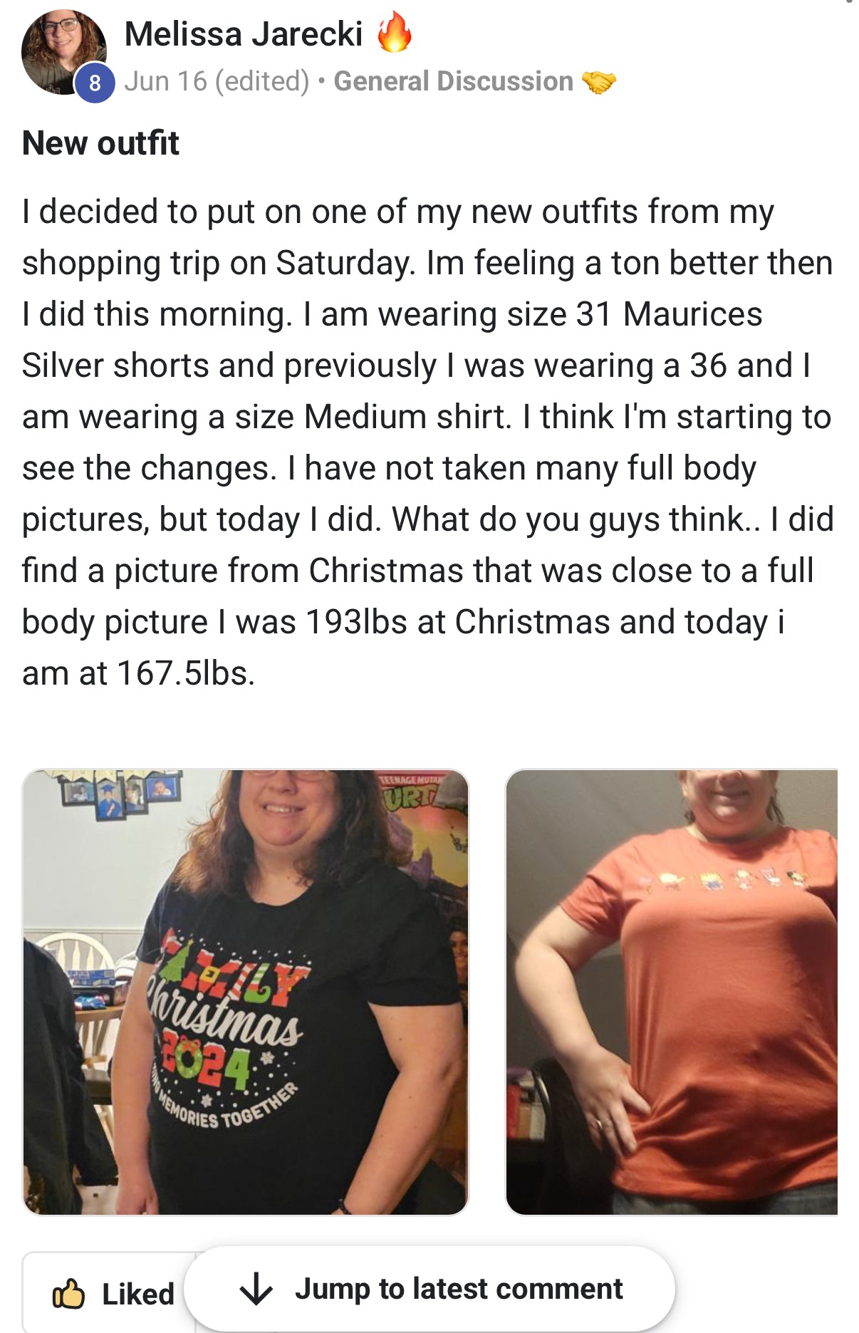I started at 195 lbs and now I’m down to 180! That’s 15 pounds gone and I feel lighter, stronger, and more confident in my body. This was just the beginning, and I’m so proud of what I’ve already achieved.