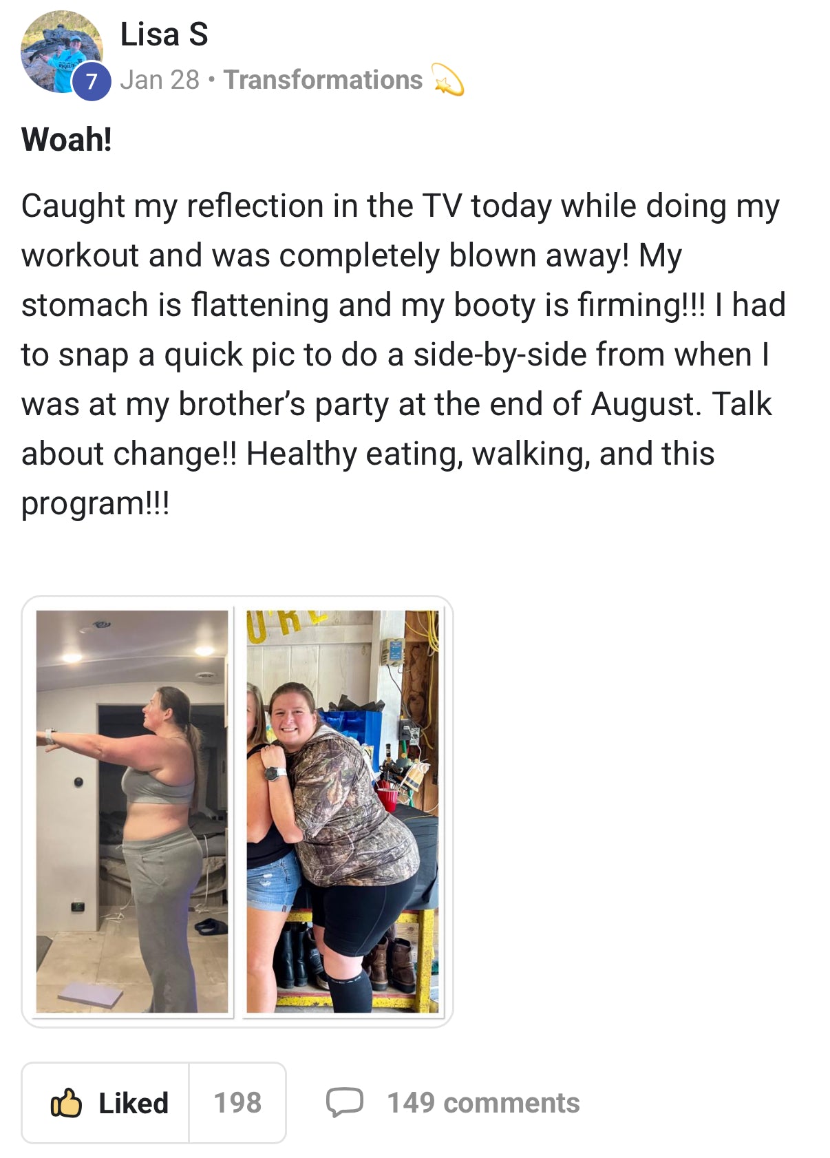 Are you tired of trying all the different “this is the most popular workout”? Are you tired of not seeing results? Or feeling any changes? I was too! I found this amazing series and community and thought, at first,”oh, here is another one”, but I felt the need to give it a try. That was the BEST decision I have ever made for myself. From day one, I knew this would finally be different! I joined in January and have lost 16 pounds! I have more energy, my mood is better and I can stand to look at myself in the mirror! This is the best choice that I have ever made. If you are ready to see and feel positive change, give it a try! You will get hooked on the program and find a different feeling about yourself that you have never felt before. I hope to see you around the community some day. 😊