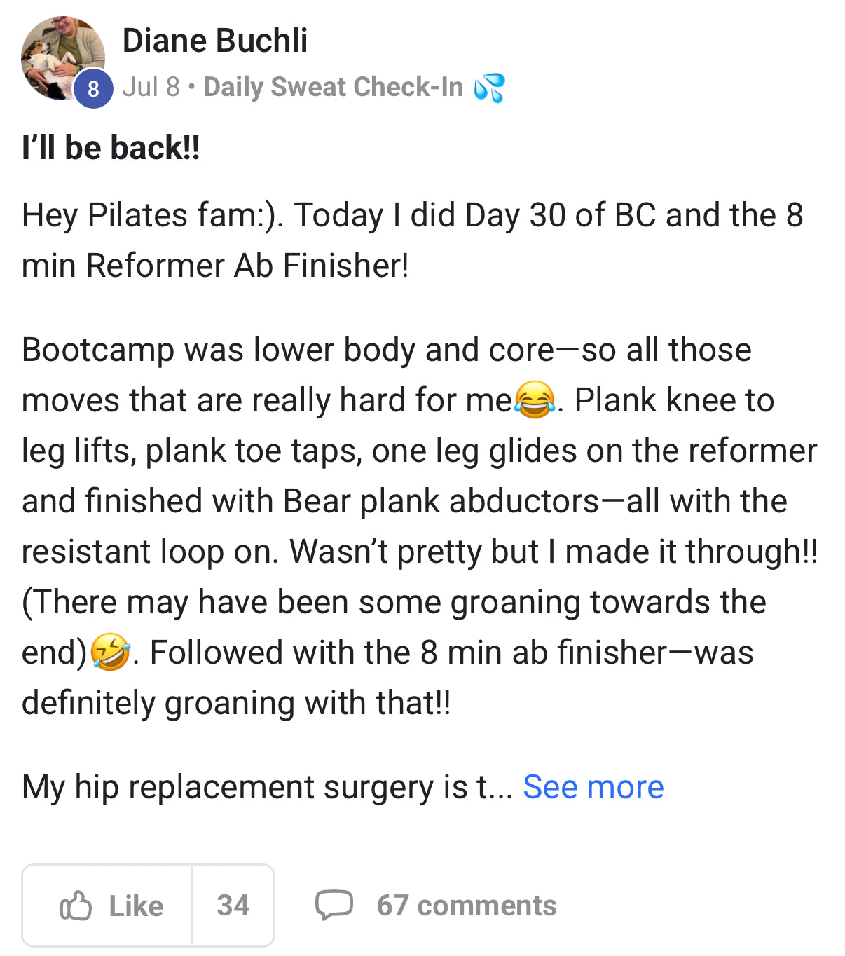 I have tried everything over the years to stay healthy but never stuck with any of them. 28Pilates is different. I worked at this program but it wasn’t “work” because it is so much fun. I have become stronger and have so much more energy to keep up with our grandkids! I can see myself continuing to become a healthier version of myself!!